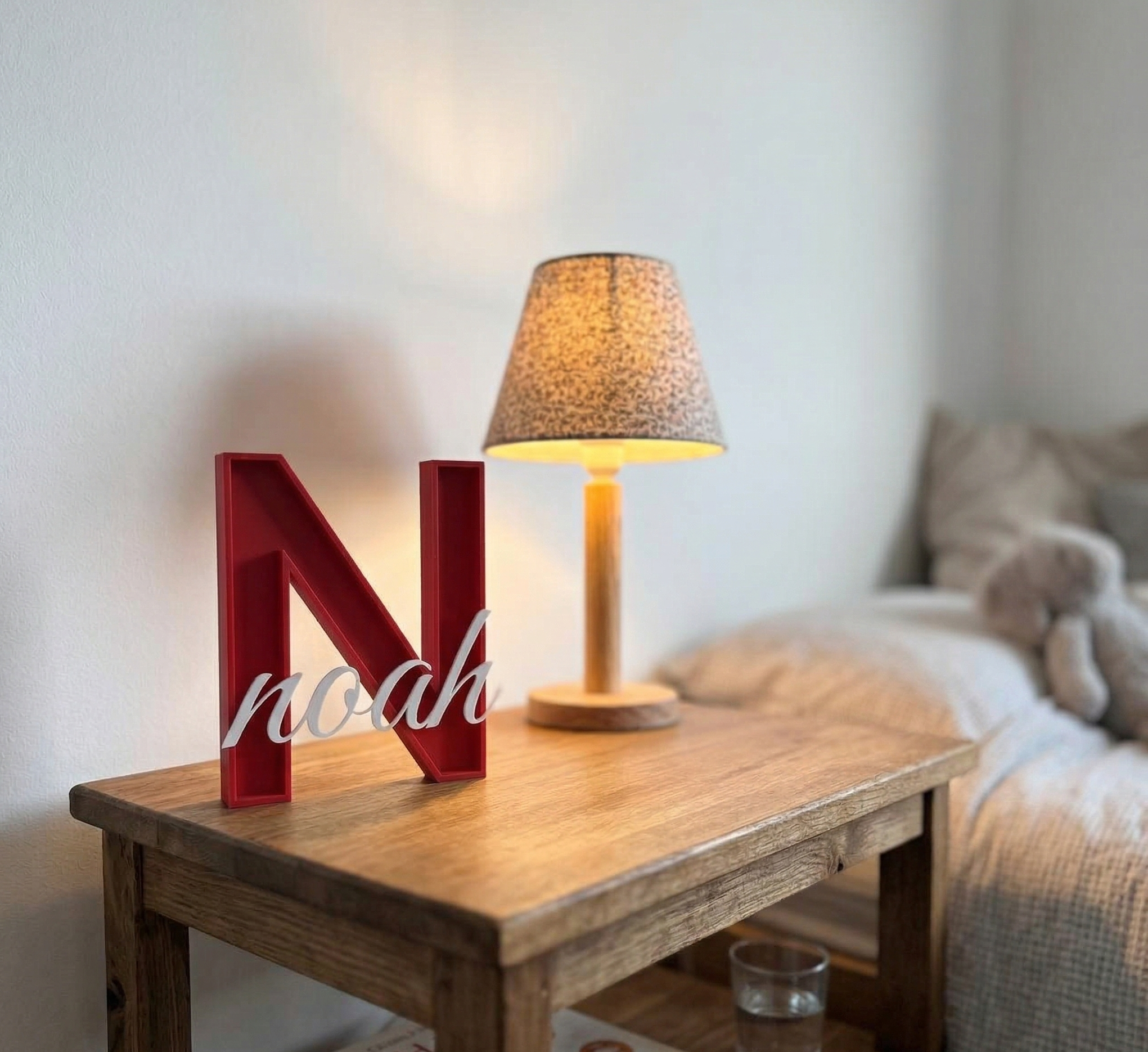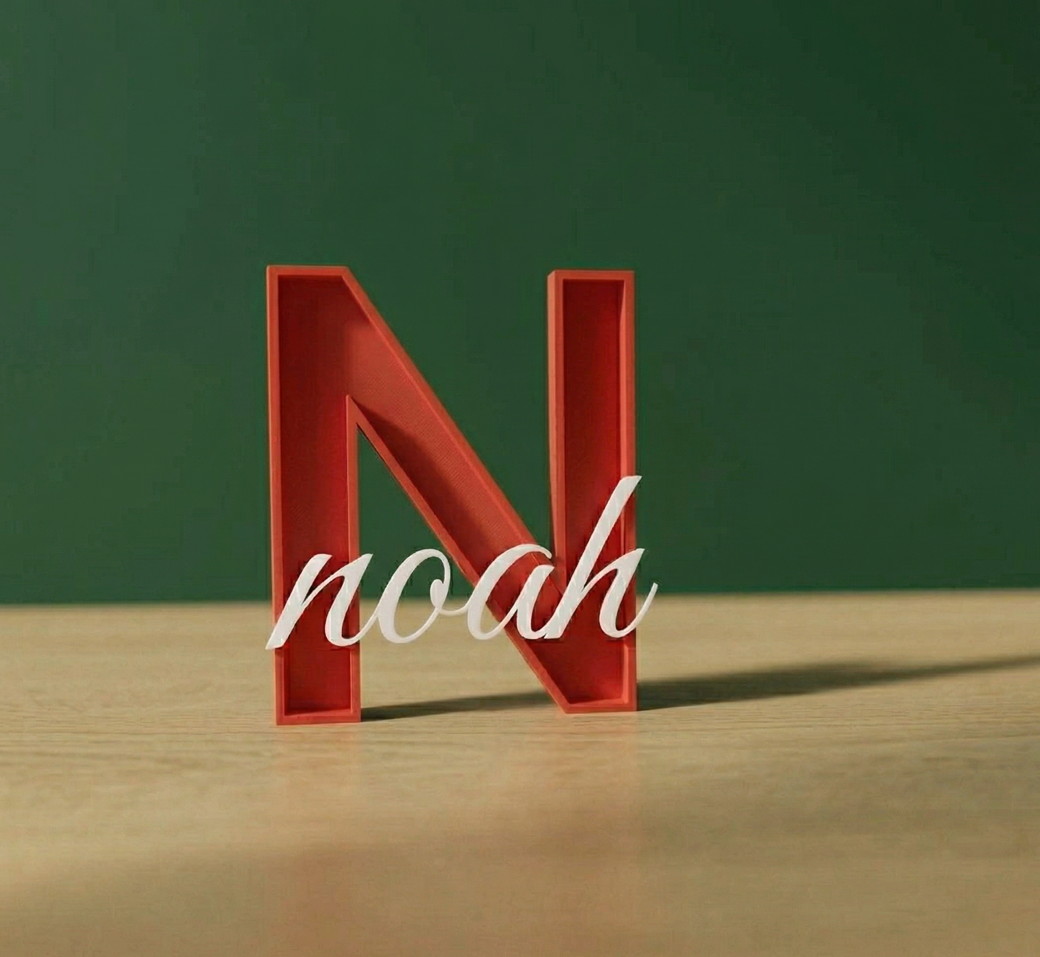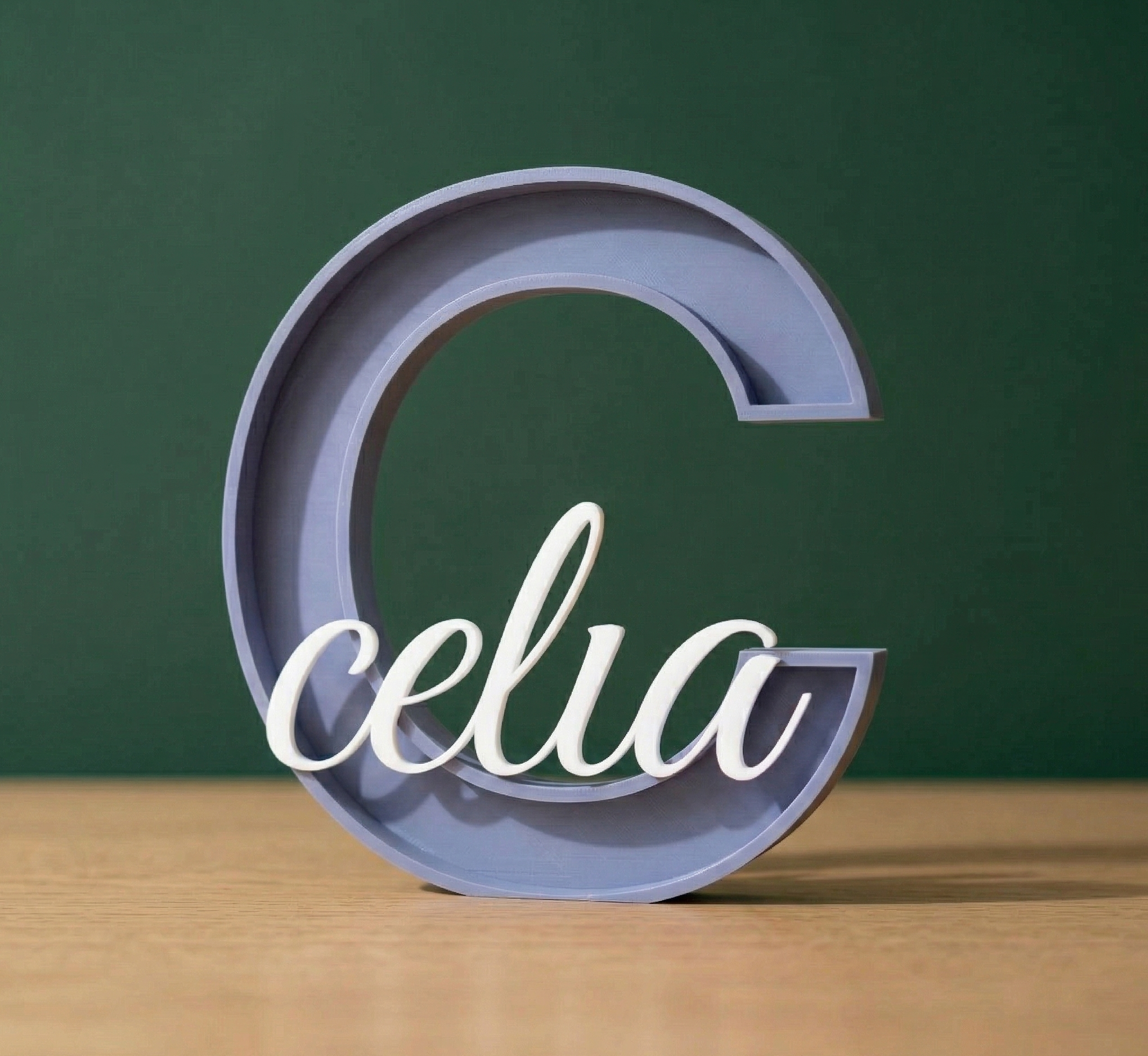 Letra y nombre personalizado en verde oliva. Diseñado y fabricado en Canarias.